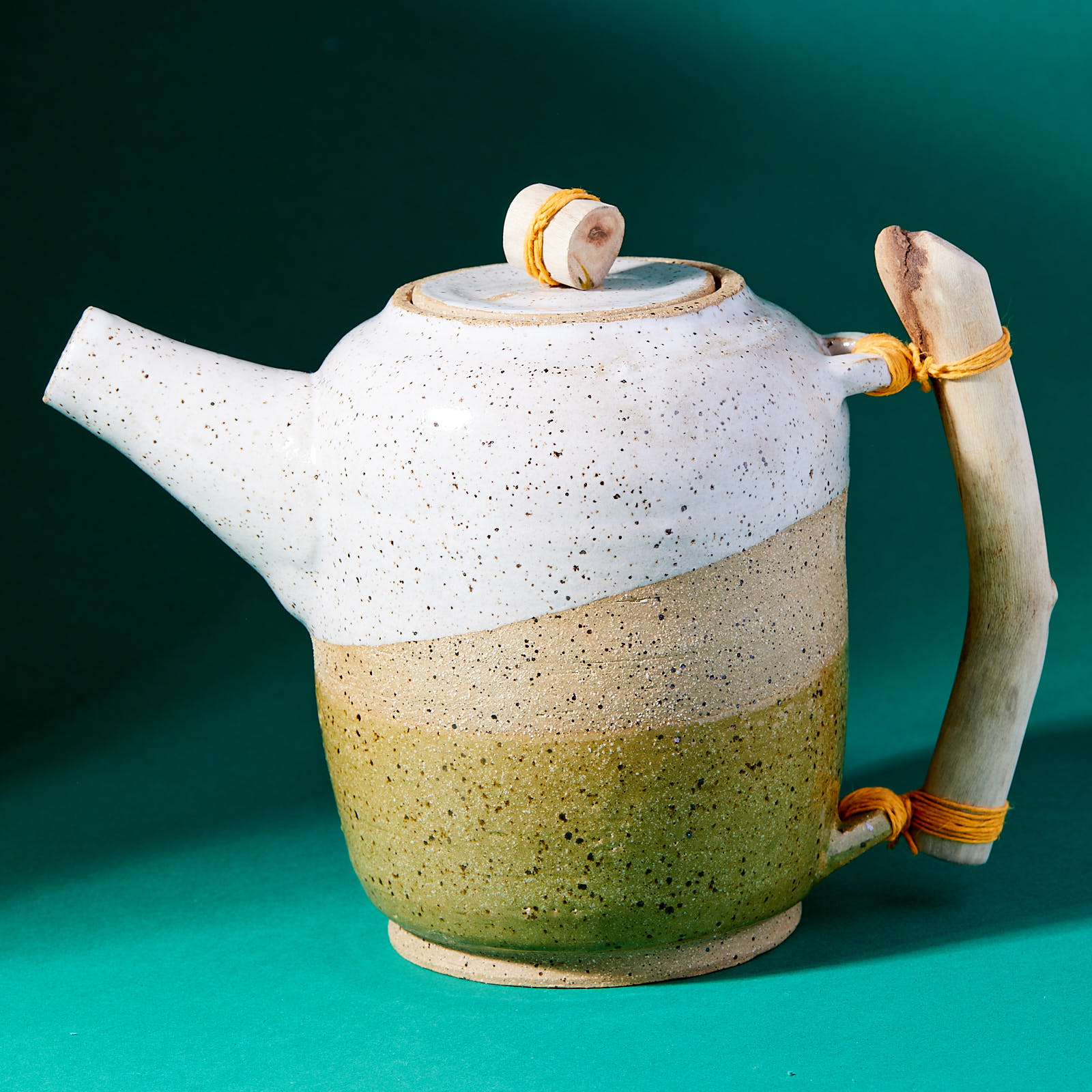 Little Tea Pot = White Green Driftwood
